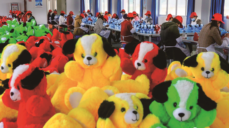 早春时节,在大河镇金仓社区康悦铭工艺品有限公司社区工厂的生产车间里,工人们正在缝纫机前有序地忙碌着。企业毛绒玩具、塑料制品的海外订单已经排到了两个月后。