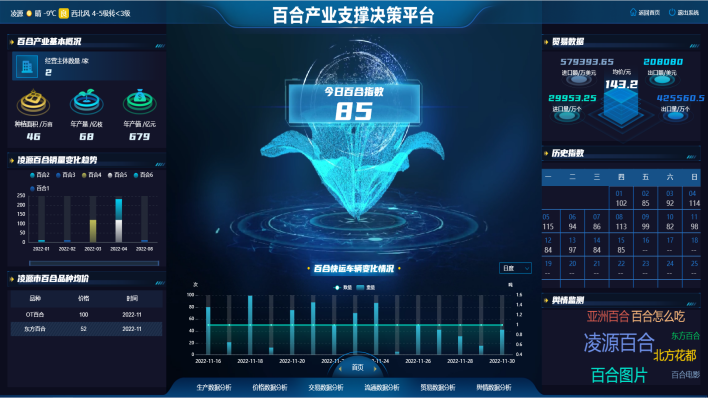 一是建设凌源市国家数字农业创新应用基地(设施蔬菜),打造国家数字农业创新应用基地的示范样板。以3个具有代表性的设施蔬菜种植基地为试点,建设面向全市的设施农业生产数字化管理平台,为花卉,蔬菜等经营主体提供数字化服务。形成一套较为完备的设施种植数字农业技术体系,尤其促进了大数据、云计算、物联网、移动互联、遥感等新技术在设施育苗生产中的应用,助力育苗企业节本降耗、提质增效,在化肥、农药、灌溉用水方面节省了30%人工,劳动生产率提高20%,单位面积产量提升10%以上,取得了显著经济社会效益,形成可推广的区域数字农业发展模式。二是打造凌源“百合”产业名片,共建数字百合产业体系。形成百合产业大数据、数据分析能力和产业数字化服务体系,进一步扩大凌源百合产业规模和效益,建成产业融合、联农惠农、乡村振兴的示范样板,为“数字凌源”的“鲜花梦”插上腾飞的翅膀。